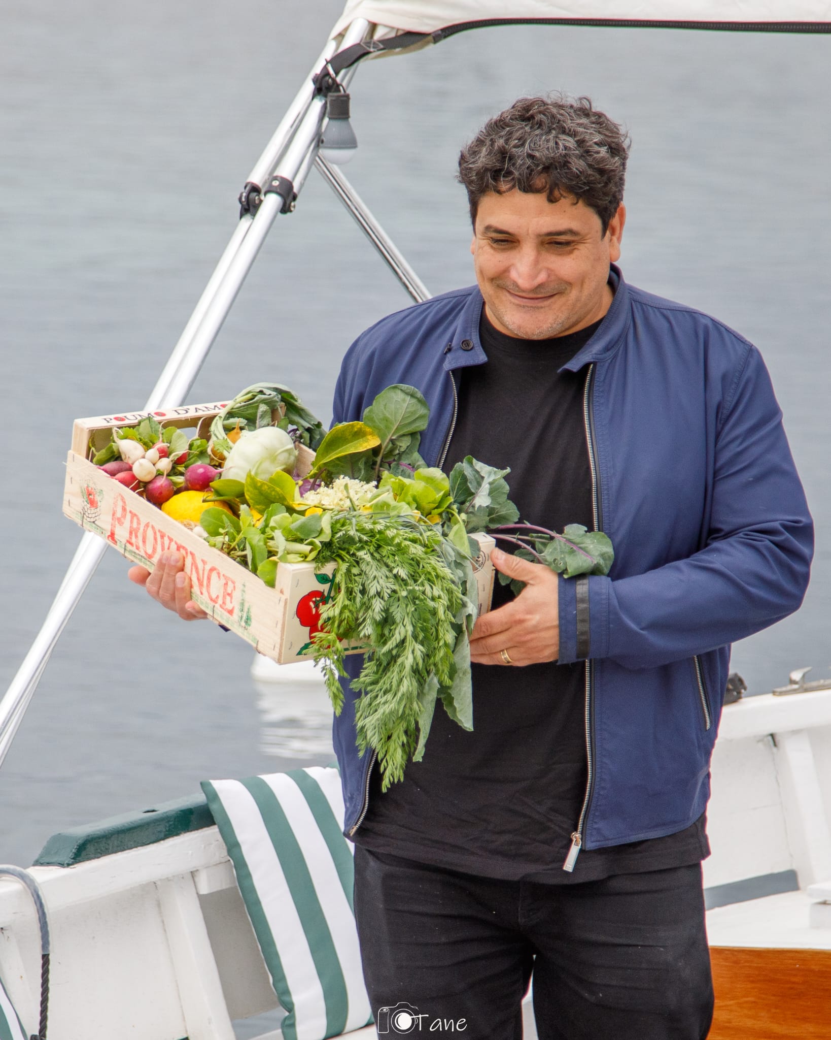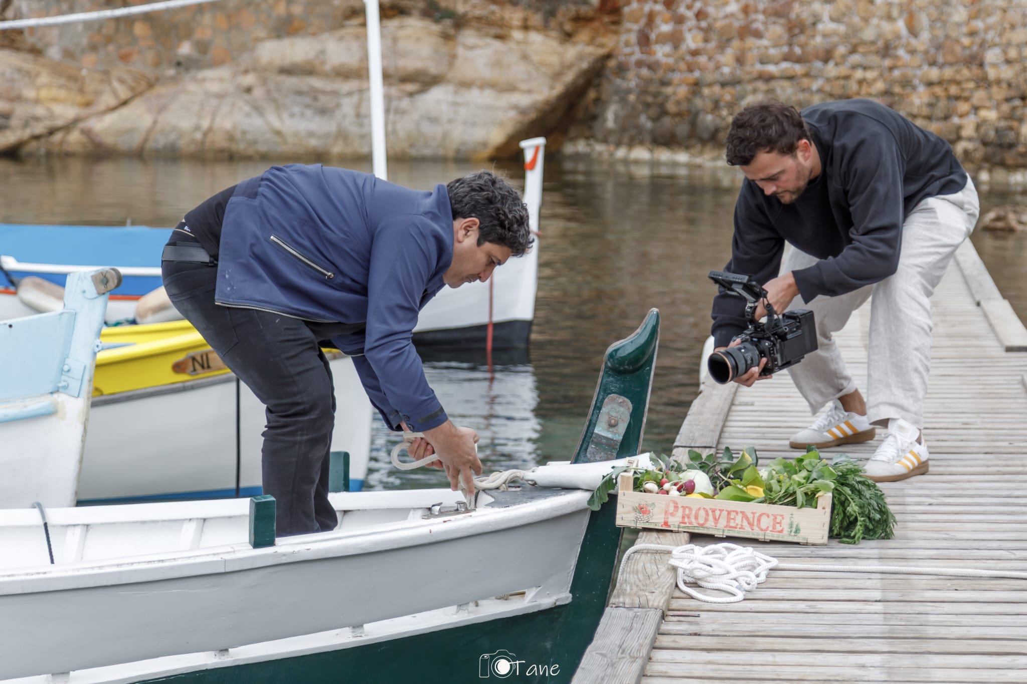 C’est dans ce contexte que le chef a choisi le cadre singulier du port abri de l’Olivette pour réaliser une partie de son tournage. Accueilli chaleureusement par Stéphane C., qui a mis à disposition son pointu traditionnel, Mauro Colagreco a pu découvrir le site lors d’une sortie en mer.